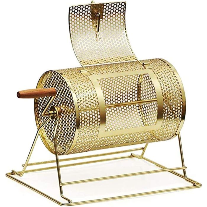 - Made of antirust heavy duty steel frame with high gloss gold finish with a solid wood handle.